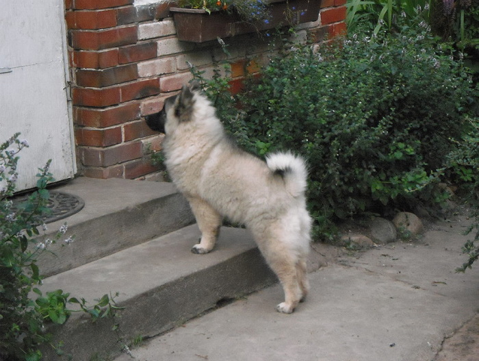 11.30 Uhr In den Garten gegangen, fein gespielt. Mistkäfer verfolgt, Spinnen gefressen, tiefes Loch gebuddelt, Hühnchen gejagt. Alles sehr intressant, aber" pfui", zu dumm!